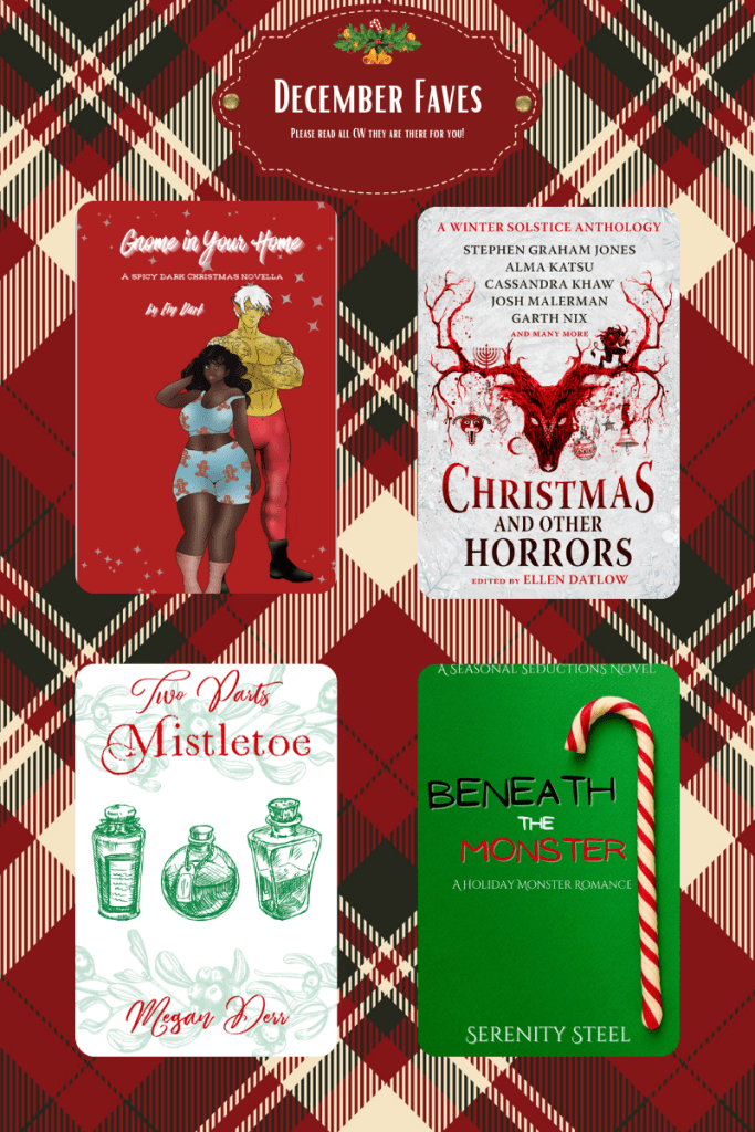 1. Gnome in Your Home: A dark-ish romance with a new twist on Santa and the act of gift giving. please read all content warnings before diving in!